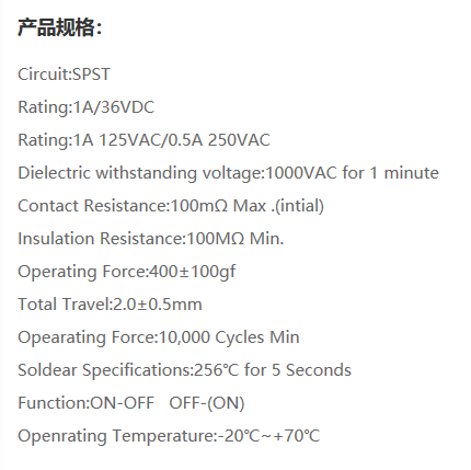 PB按鍵開關(guān)參數(shù)及圖紙
